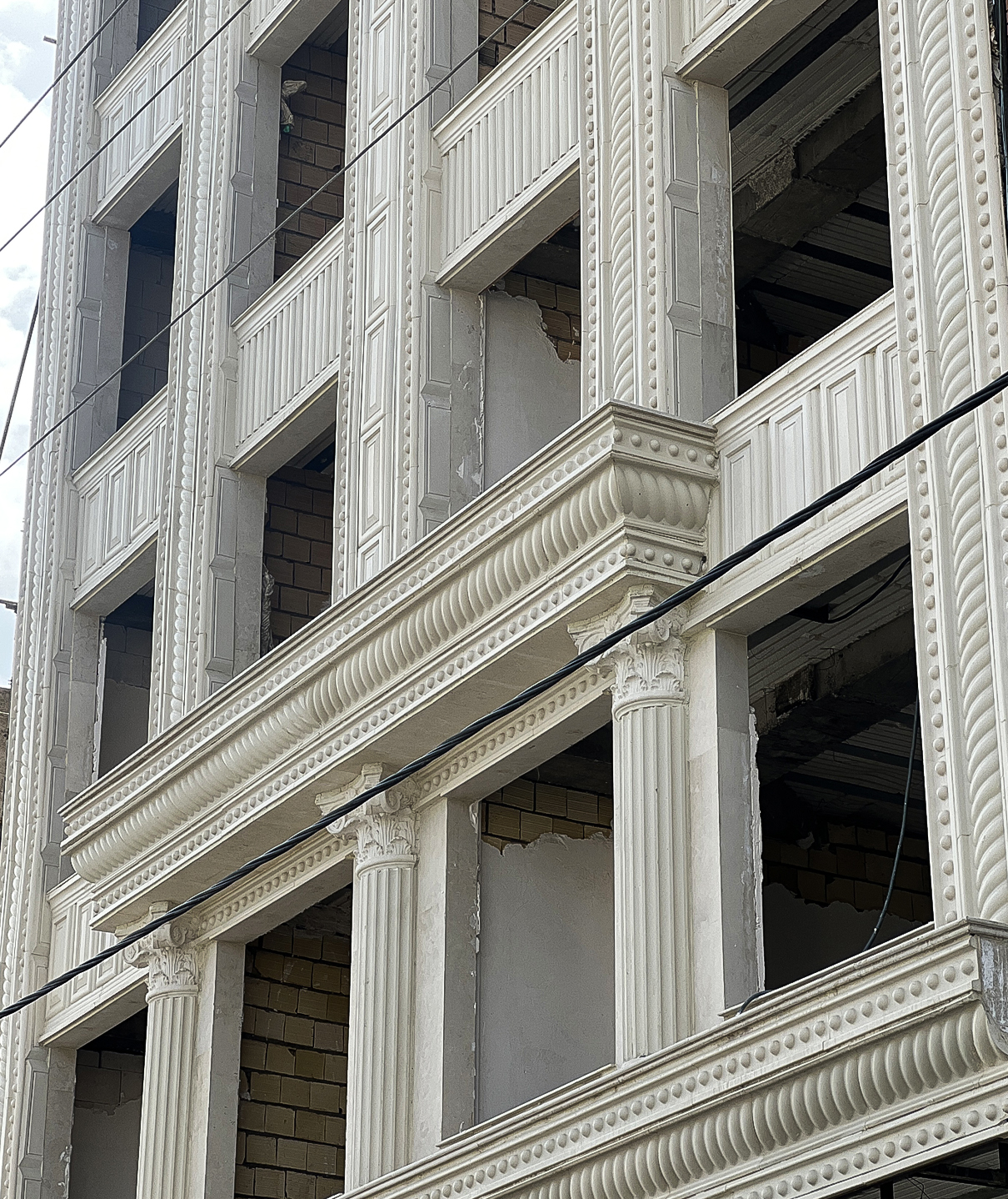 سبک نمای کلاسیک با استفاده از سرستون سنگی، ستون سنگی و باند یا سینه کفتری طراحی شده است .